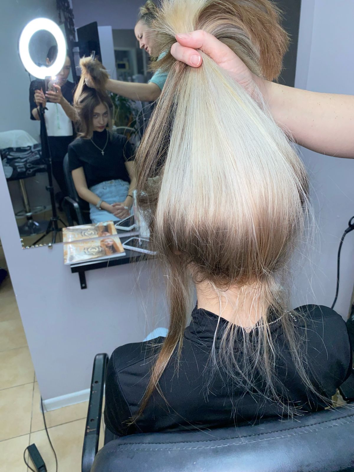 * очень длинные волосы — до 50 см - После каждого клиента проводится тщательная дезинфекция рабочего места, инструментов (в три этапа) согласно нормам СанПиН. Инструменты стерилизуются в индивидуальных крафт-пакетах в сухожаровом шкафу.